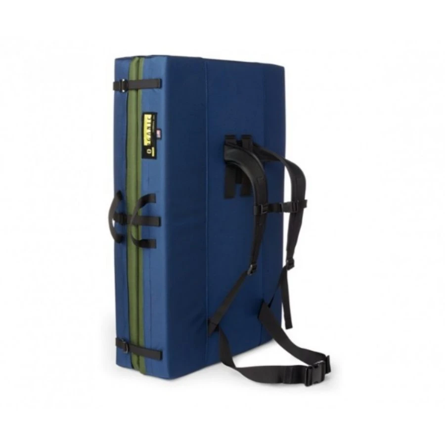 Featuring a 1050d ballistics shell, 1000d pad top, 3 convenient grab handles, hybrid hinge, beefy adjustable shoulder straps, sternum stabiliser, and a hip belt, (which is easily upgraded to the deluxe Muffin Protector hip belt) the Simple Pad has a landing zone made from one-of-a-kind recycled materials.