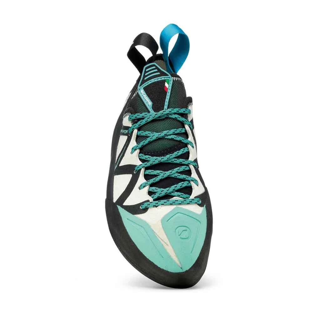 The Scarpa Vapour Lace Women’s climbing shoe is excellent on small edges and is a standout for technical route climbers operating on vertical to steep terrain. The Women’s Vapour lace offers a shoe with a narrower forefoot and slimmer heel compared to the Vapour Lace.